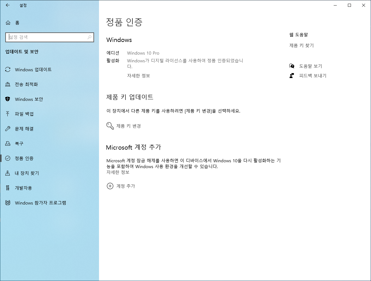 정품 스티커가 없거나 같은 에디션 설치후 인증이 안되는 컴퓨터는