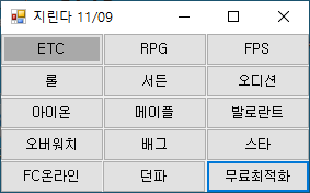 목록에 X 사무용 ETC 선택 표준 게임최적화 적용